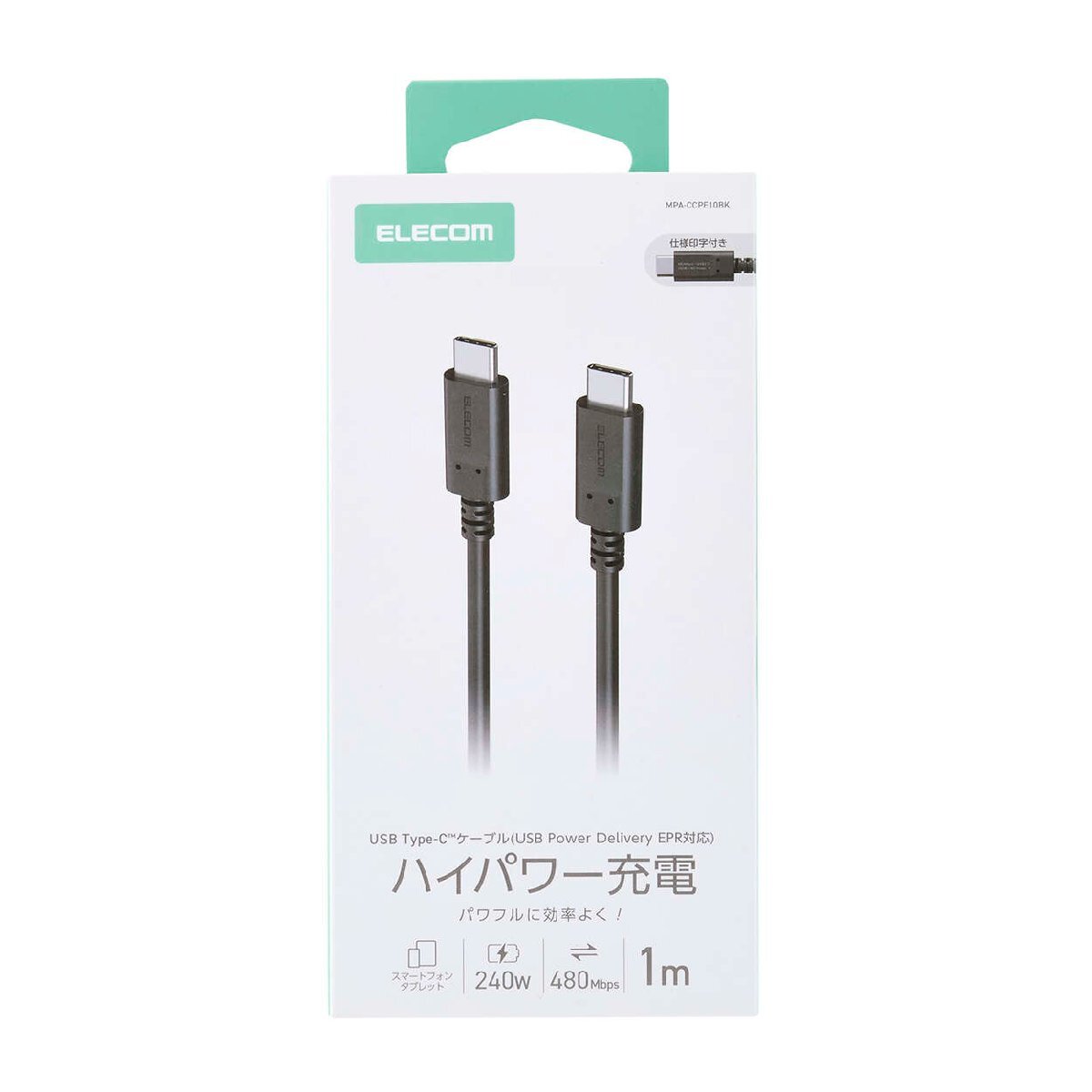 > USB2.0ケーブル [C-C] 1.0m USB Power Delivery EPR対応 最大240W出力 最大480Mbpsでのデータ転送が可能: MPA-CCPE10BK