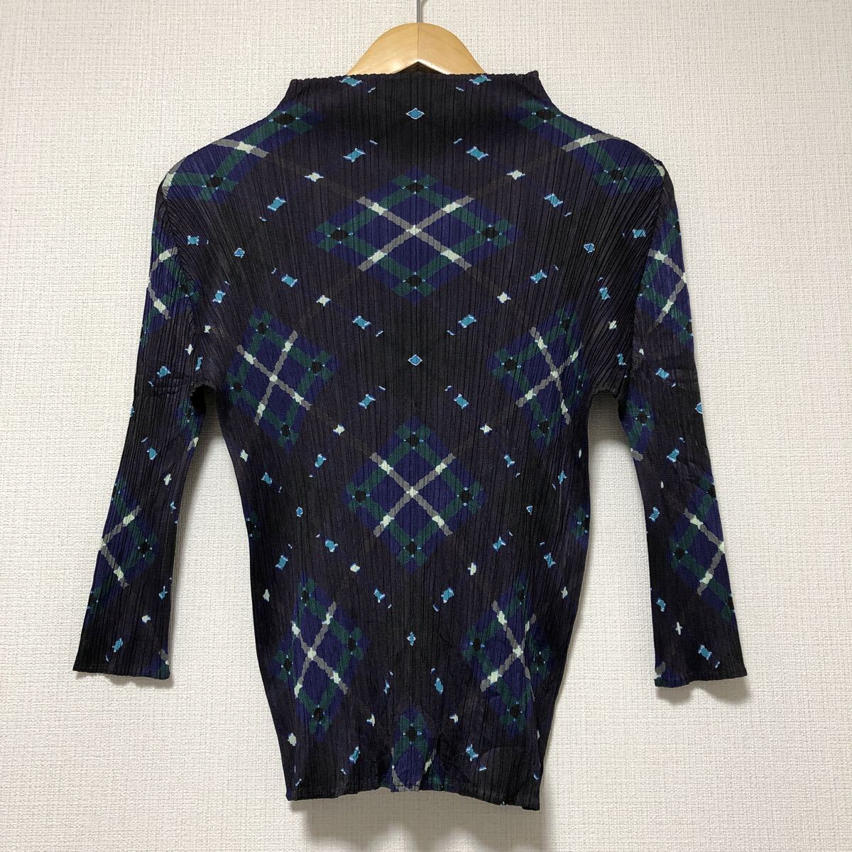 - (k) PLEATS PLEASE ISSEY MIYAKE イッセイミヤケ モックネック チェック柄 ハイネック 長袖 トップス シャツ カットソー 3 紺