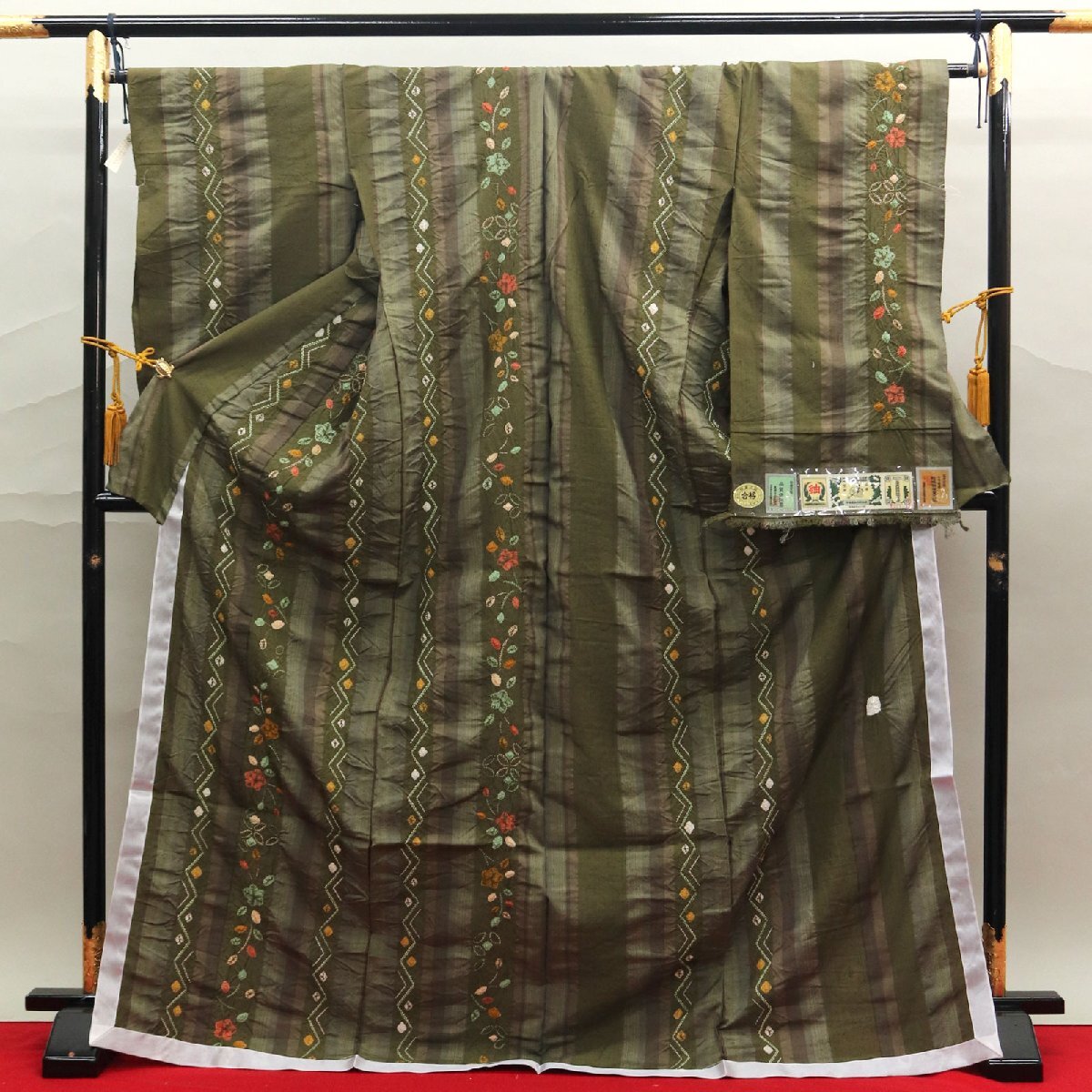 ※お仕立てをご希望の場合は、下記の料金にて承らせていただいております。 ご落札後にご相談くださいませ。 <単衣仕立ての場合> ・お仕立て代(海外手縫い仕立て)15,000円+解き湯のし3,800円+衿裏3,800円=22,600円(税込) ・ご希望により居敷当て(税込3,000円)、背伏せ(税込2,000円)をお付けすることも可能でございます。 <袷仕立ての場合> ・お仕立て代(海外手縫い仕立て)15,000円+解き湯のし3,800円+胴裏8,800円+八掛8,800円=36,400円(税込) (八掛付の商品の場合は、八掛代8,800円は必要ございませんので27,600円(税込))
