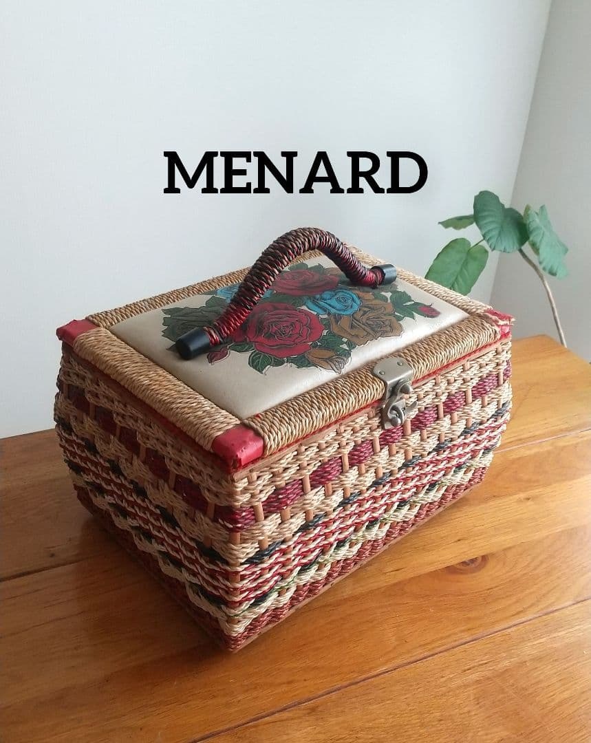 > MENARD ヴィンテージ 裁縫箱 収納ボックス 薔薇柄 籠バスケット 横約33×高さ(持ち手含まない)19×幅24㎝