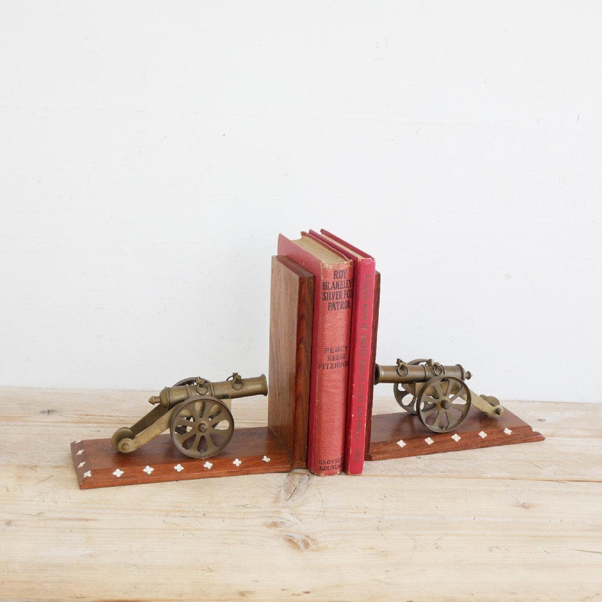 - アメリカ ヴィンテージ ブックエンド / 真鍮製 大砲 チーク材 置物 オブジェ ディスプレイ小物 #602-40-039-272