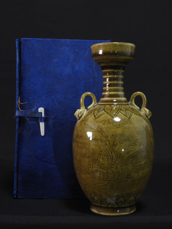 - 花器 鳳凰馬図 中国李朝高麗 箱 【送料無料】