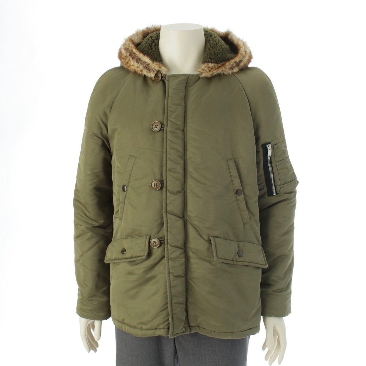> サンローラン エディ期 ファーフーディ 中綿 ミリタリーコート 397648 カーキ 44【中古】
