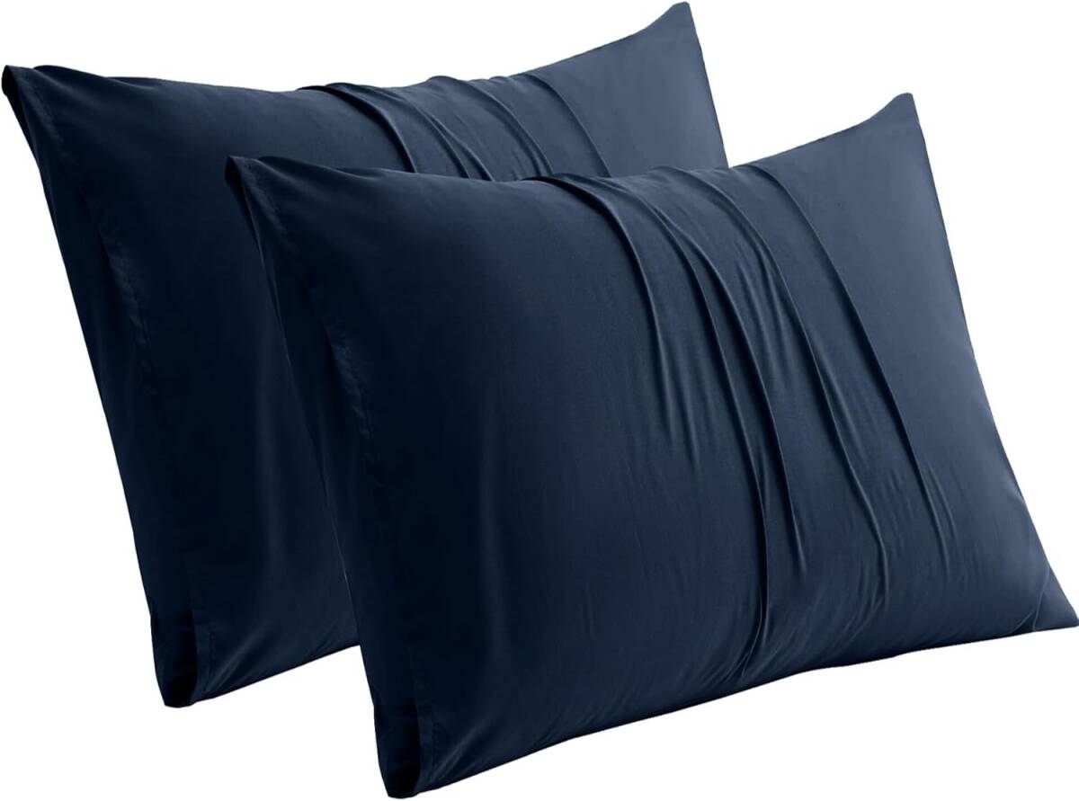 > 【2枚セット】枕カバー 43x63cm ピローケース ピーチスキン加工 封筒式 おしゃれ オールシーズン 通気 速乾 ネイビー