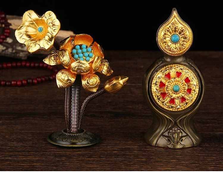 - チベット 密教 密宗 法器 唐密 真言宗 蓮花細工 常花 2点セット 蔵式 供仏 護符 開運 風水 お守り 厄除け 装飾 置物 賞物 収蔵 sux142