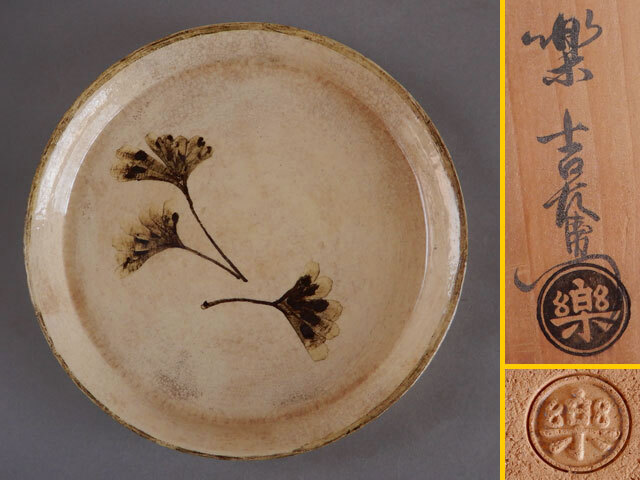 - 十二代 楽 吉左衛門 (弘入) 銀杏ノ絵 菓子皿 菓子器
