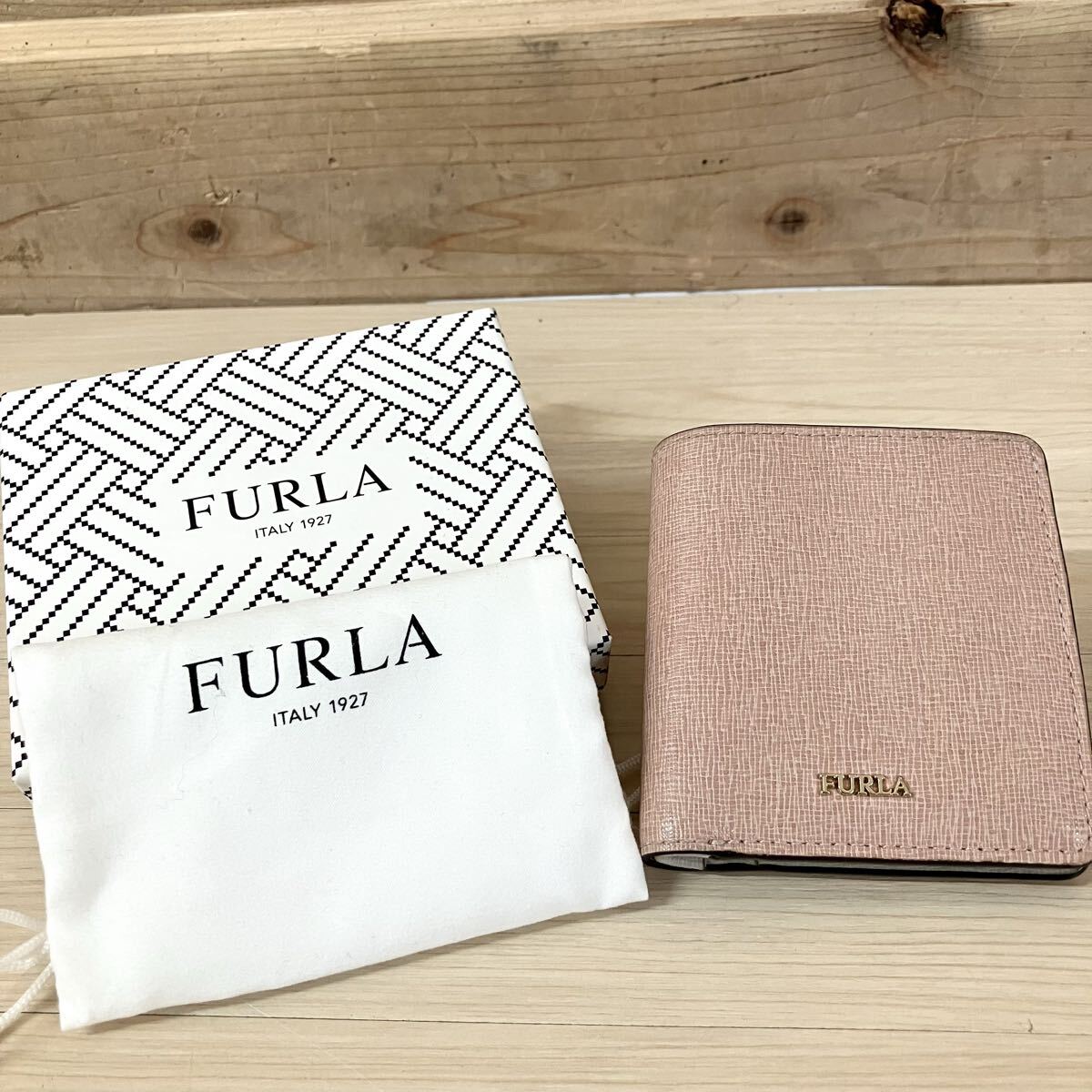 > 4 EN FURLA レザー 二つ折り財布 フルラ ピンク ラウンドファスナー 箱付き