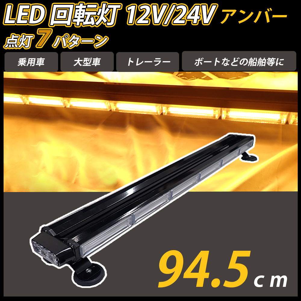 > LED 回転灯 アンバー 94.5cm バータイプ 黄色 COB シガーソケット電源 強力マグネット取付 パトランプ 作業灯 パトロール 警告灯 送料無料