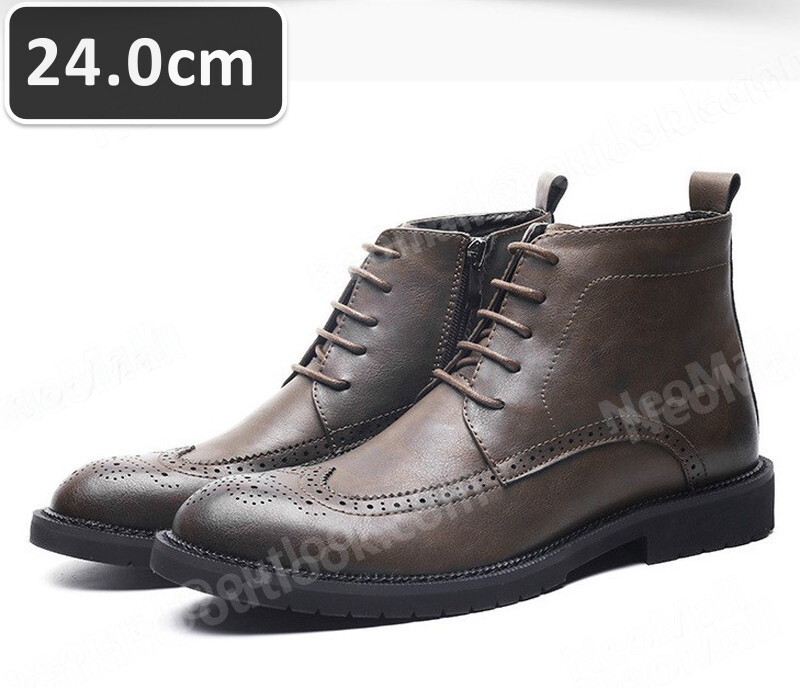 - サイドジッパー付 PUレザー メンズ シュートブーツ ブラウン サイズ 24.0cm カジュアル 屈曲性 通勤 軽量 インポート品【n029】