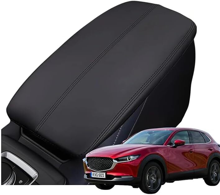 > マツダ CX-30 DM系 アームレストカバー コンソールボックスカバー 保護カバー (黒レザー×黒ステッチ) ブラック 取り付け簡単