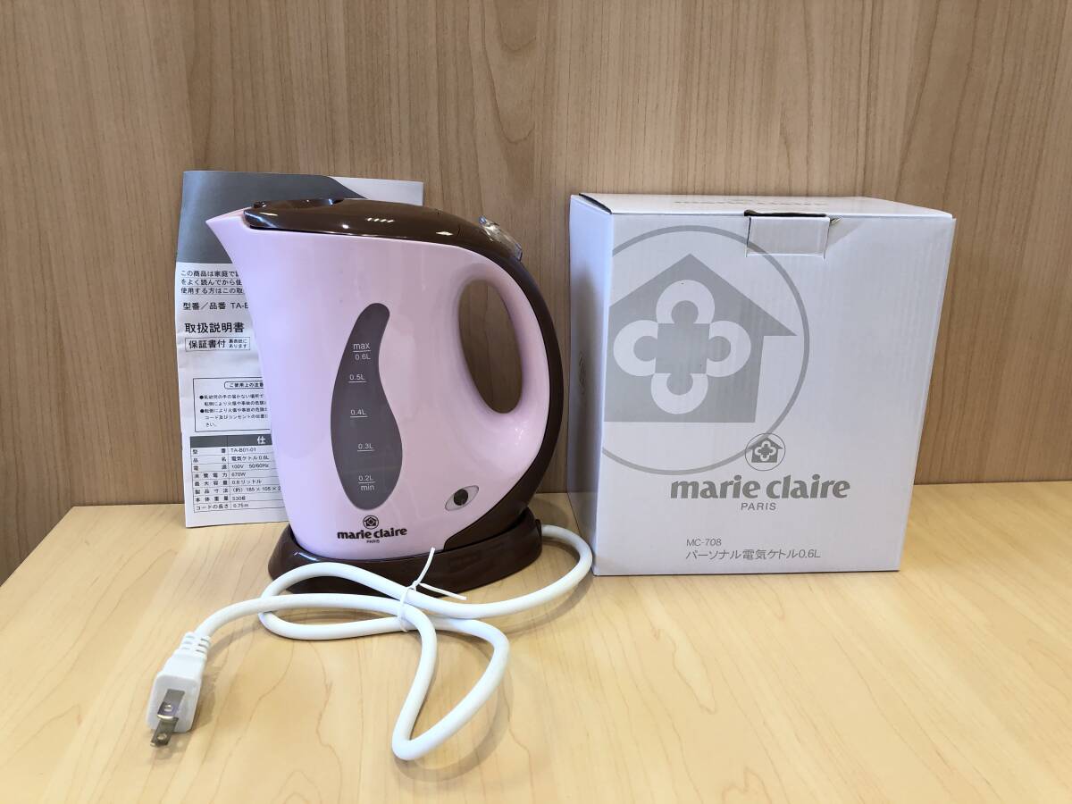 > 《11461》未使用 marie claire マリ―クレール パーソナル電気ケトル 0.6L 説明書・箱付