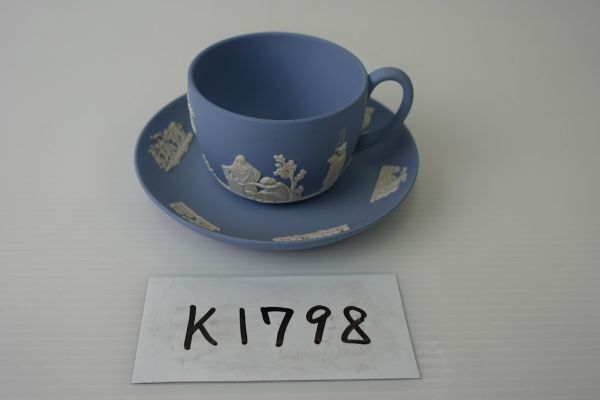 - 【k1798】ウェッジウッド ジャスパー ティーカップ&ソーサー 青白 英国製 WEDGWOOD