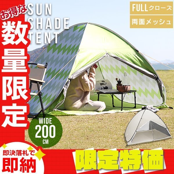 - 限定セール【アイスグレー】ワンタッチ ポップアップテント 幅200cm サンシェード テント 軽量 日よけ レジャー キャンプ フェス 車中泊