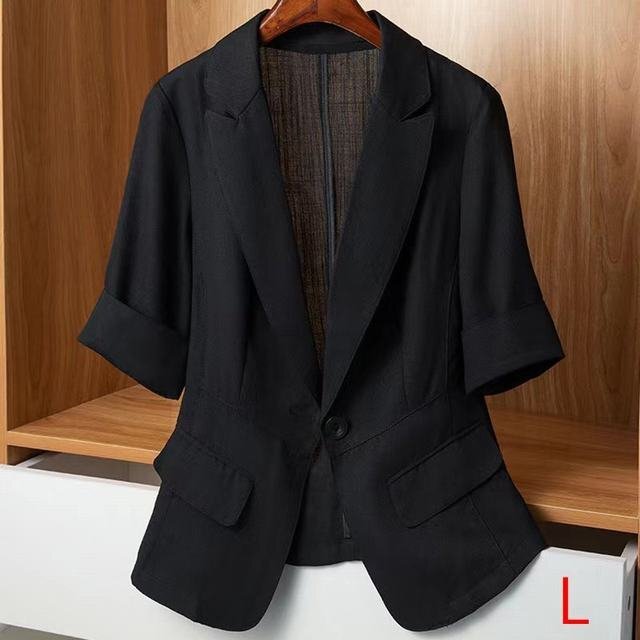 - テーラードジャケットレディース 半袖スーツジャケット 黒 ブレザーコート オシャレスーツ 薄手ブレザー オフィスアウター ブラックl