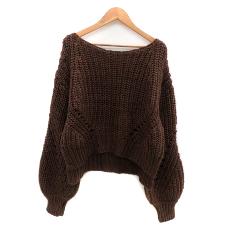 > 未使用品 リエンダ rienda ニット セーター ラウンドネック 長袖 ショート丈 S ダークブラウン /HO32 レディース