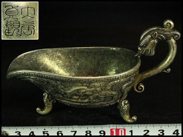 - 【金閣】中国美術 鍍銀 饕餮紋 三足 水注 唐物 旧家蔵出 送料無料(ZE418)
