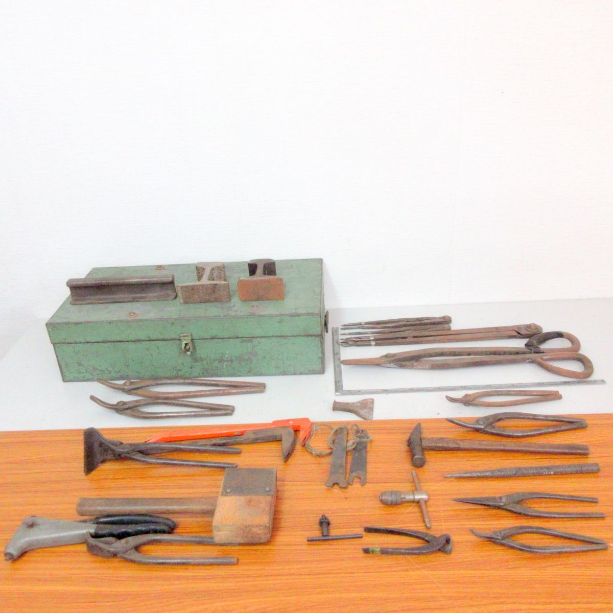 - ジャンク 現状品 古道具 鍛冶 工具 まとめ売り セット 金床 ハンマー ペンチ 金切鋏 木槌 工具箱 アンビル レール レトロ/ガガ1117-2