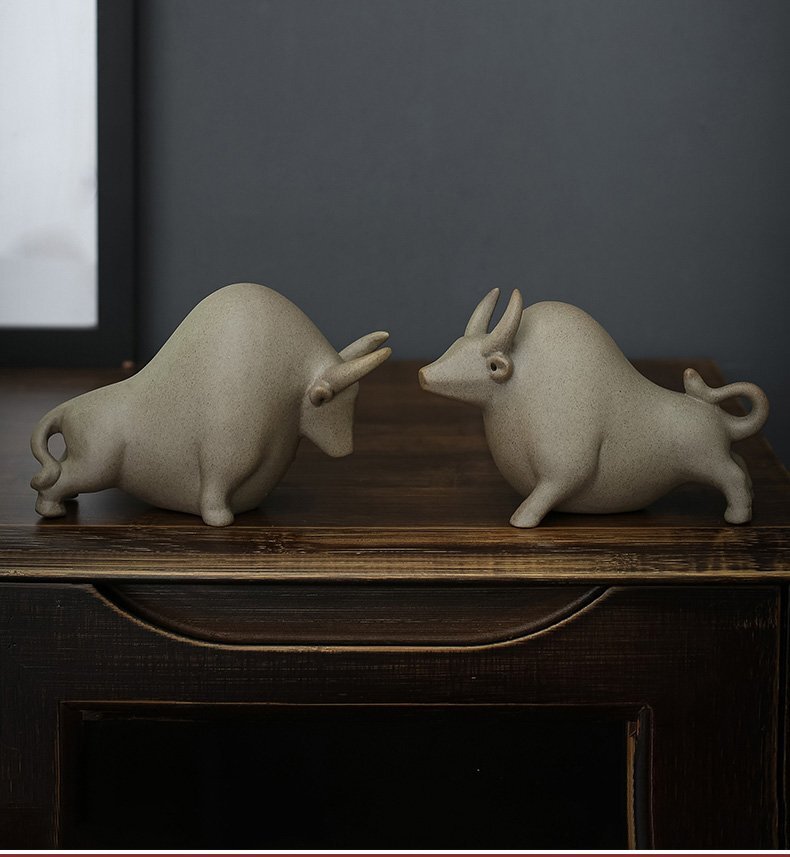 - 高品質 茶寵 置物 覇気茶寵牛 陶磁器セラミックス紫砂 徳化窯 置物 供養 装飾 収蔵 一組2個
