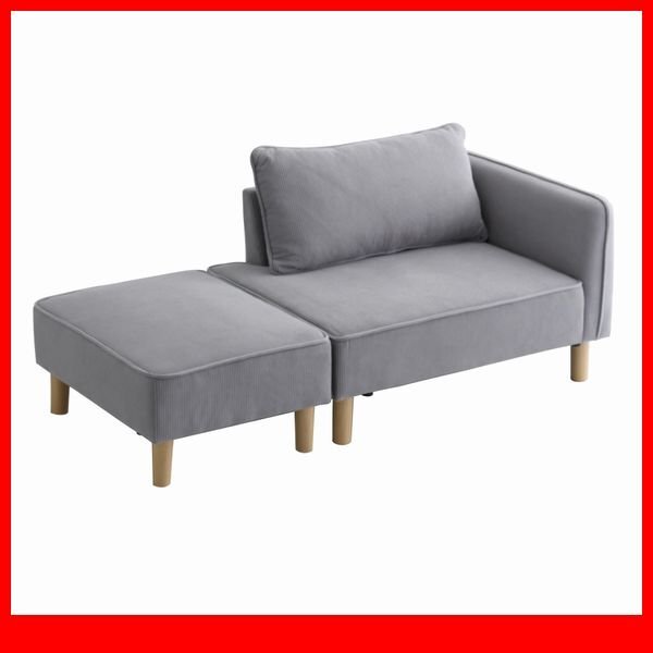 > ソファ★新品/コーデュロイ生地 コンパクトカウチソファ オットマン/脚を外してローソファ/ライトグレー/a3