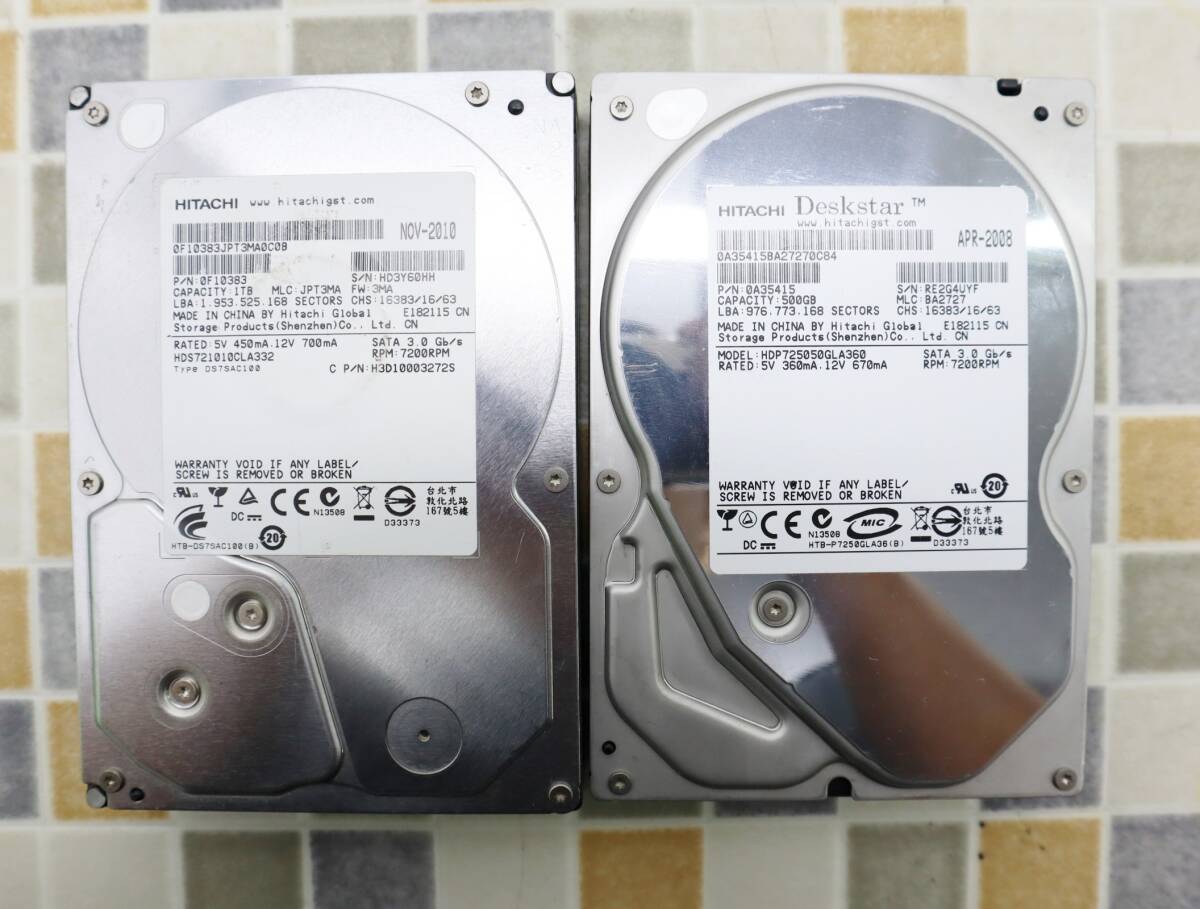 > ∨ 2枚|3.5インチ 内蔵ハードディスク|HITACHI 日立 HDP725050GLA360 HDS721010CLA332 SATA|エラー ジャンク 500GB 1TB■O2194