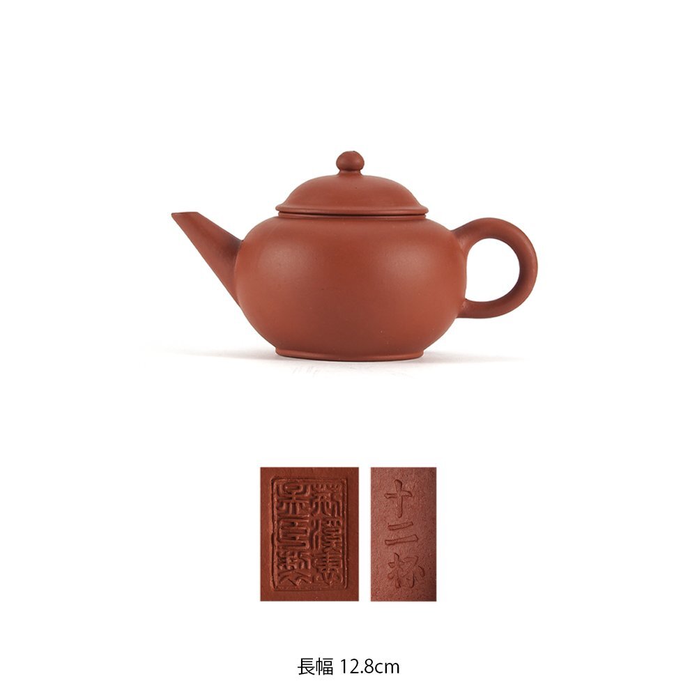 - 【夢工房】唐物 朱泥 「 荊渓恵孟臣製 」 底款 「 十二杯 」 蓋裏印 急須 長幅12.8㎝ TE-078
