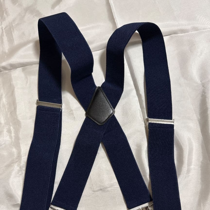 - 【紺】サスペンダー調節可能なショルダーストラップ付◎ クロス部分はフェイクレザーです!大切な男性への贈り物としてもオススメです