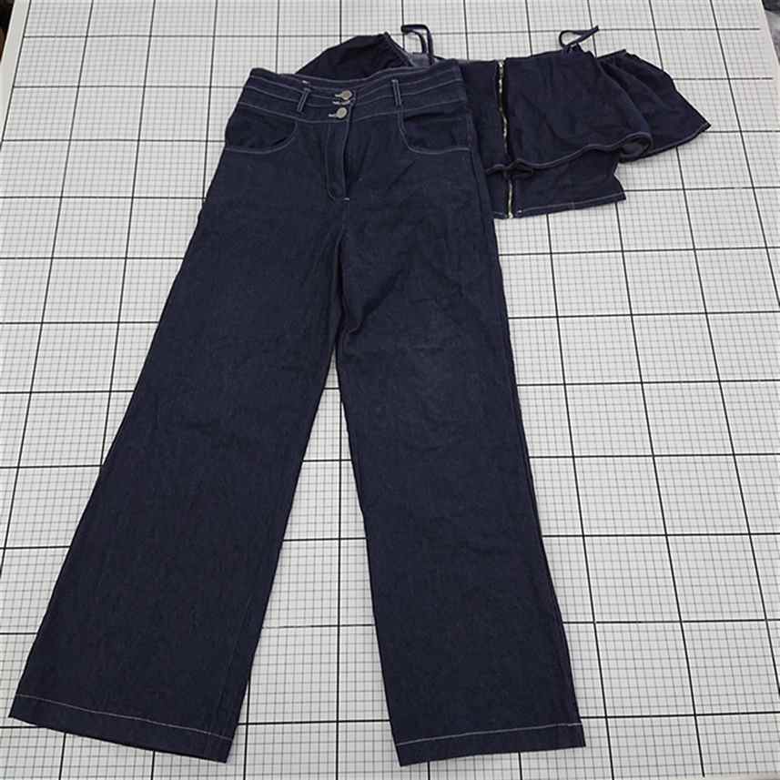 - ◇ ⊂ ラファエル LAF デニムセットアップ オフショルダー&ワイドパンツ Mサイズ レディース E