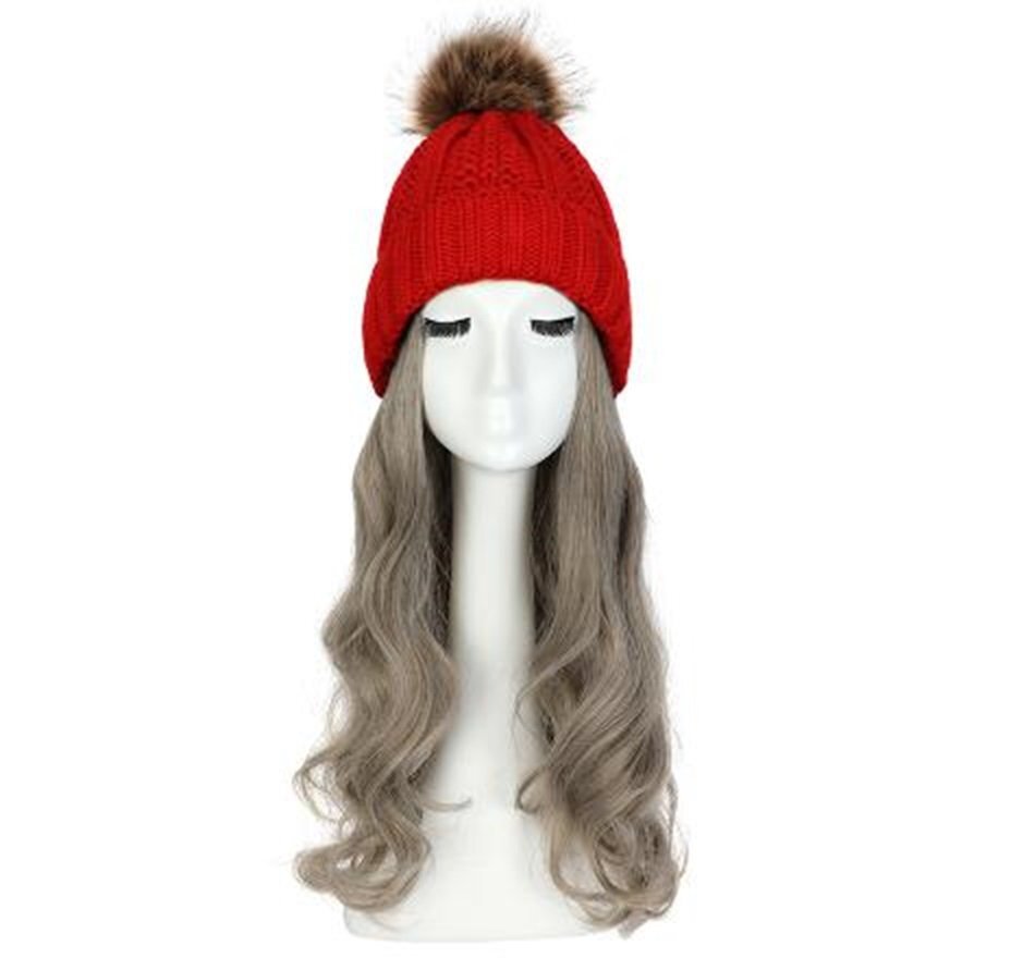 - ウィッグ付きニット帽 ニット帽/レッド ウィッグカラー/G ロングヘアー イメチェン 髪色チェンジ コスプレ