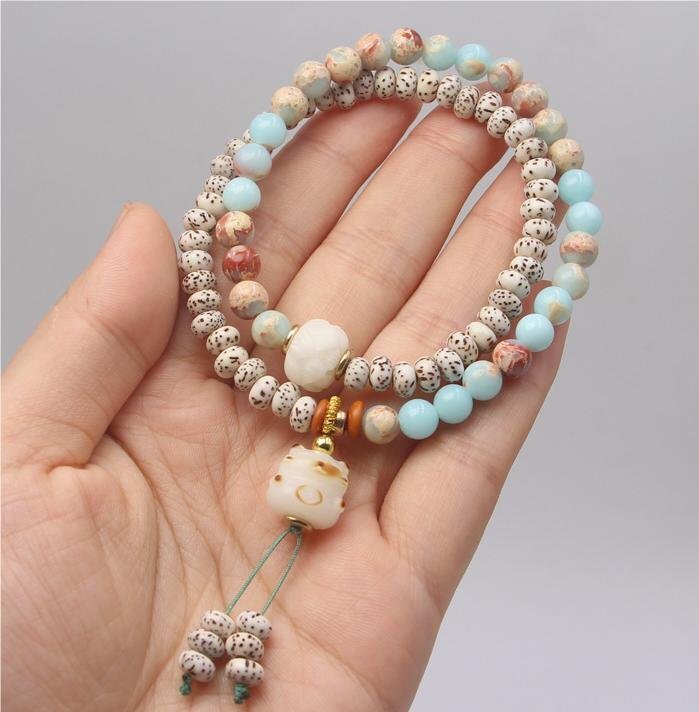 - 送料無料!星月菩提 寿山石 ダブル輪 手串 仏珠 天然木 数珠 ブレスレット 風水 厄除け 縁起物 開運 守り神 金運 擺件装飾