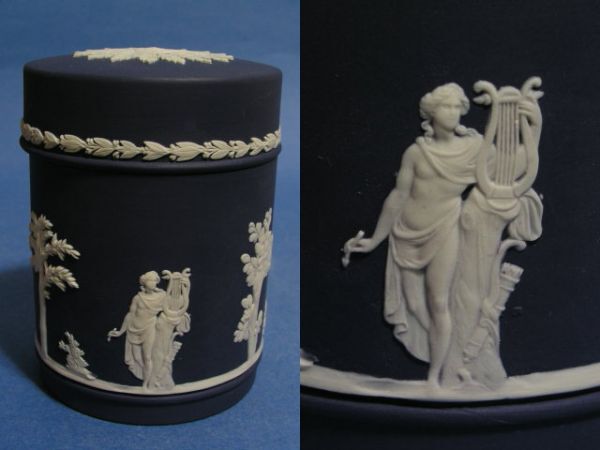 - ◎ウェッジウッド 紺色ジャスパー 蓋物 煙草入れ 「3女神」◎za