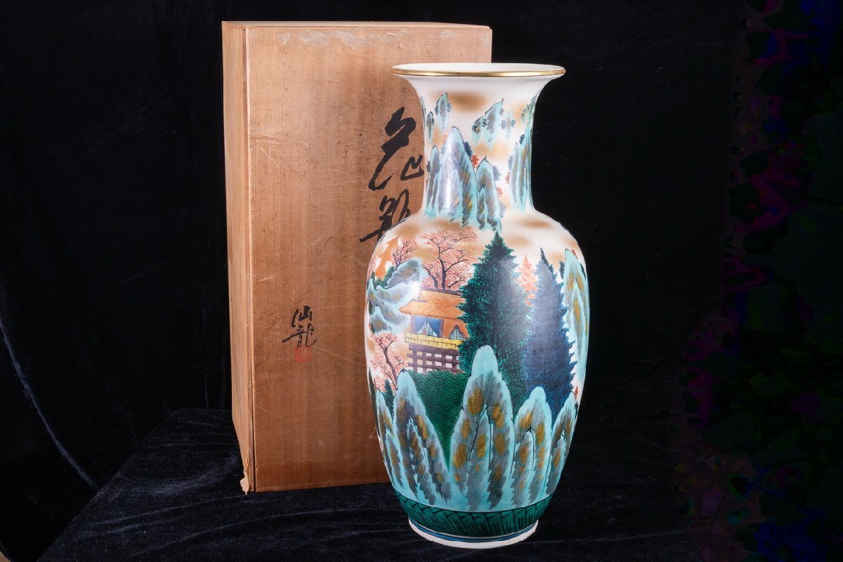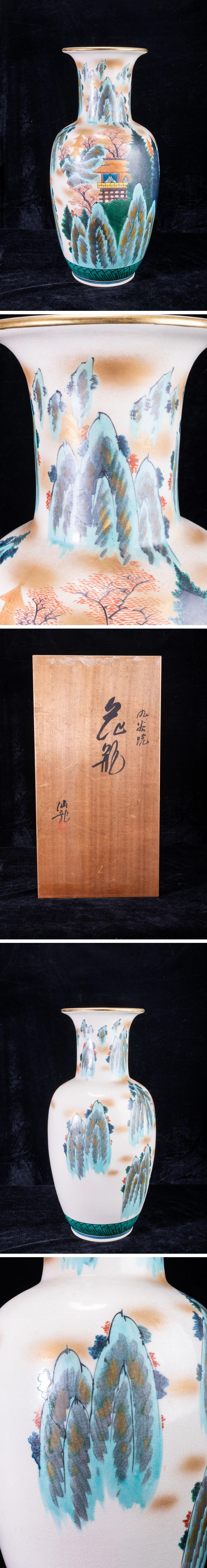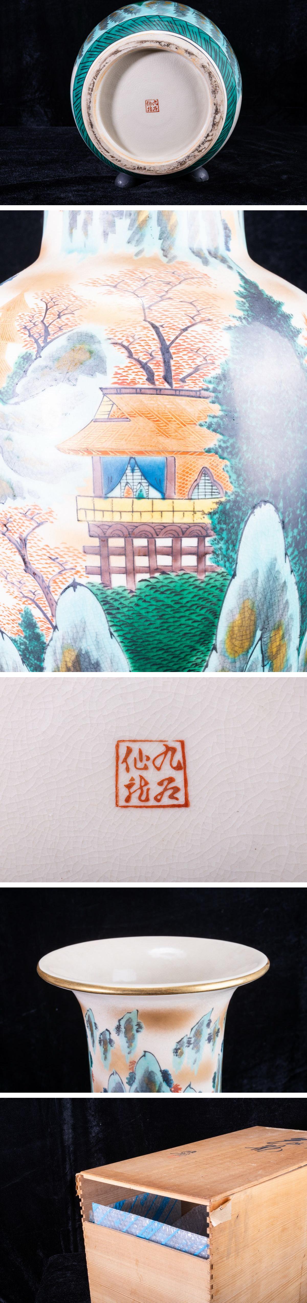 - 【珍品堂】1円から N99-N7 九谷焼 仙龍 作 在銘 金彩 染錦 景色図 細密細工 花瓶 高63.5㎝ 飾壺 花器 鑑賞品 コレクション 時代物 骨董品