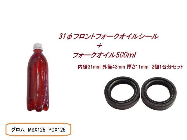 > ☆★31φフロントフォークオイルシール+フォークオイル500ml/グロムMSX125PCX125