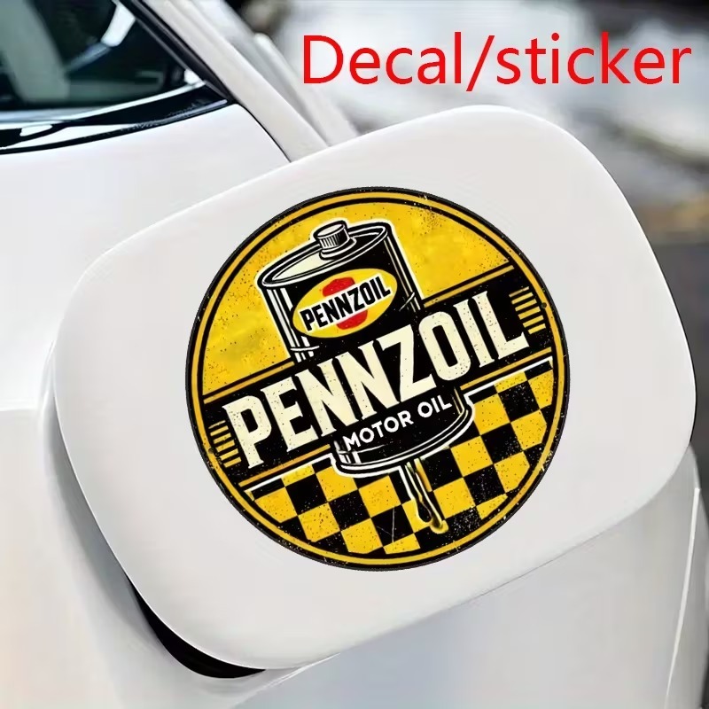 > 2枚セット ステッカー オイル 車用 7.6cm イエロー 黄色 ペンゾイル 円形 丸形 ビニール 貼り付け シール 2D 防水 おしゃれ 窓用 t9427