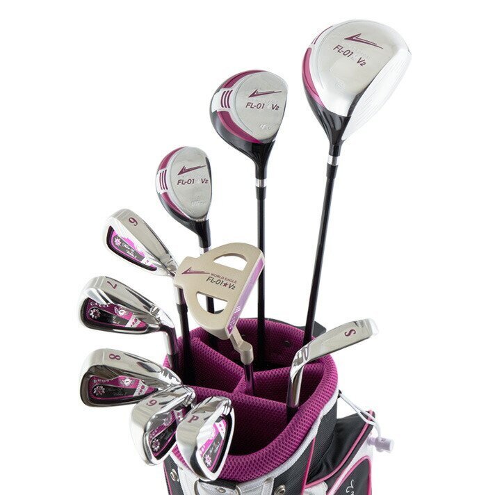 - 展示品アウトレット!ブラックピンクのROCK'N'ROLL!☆レディース13点ゴルフクラブセット 女性用/右用[19964]