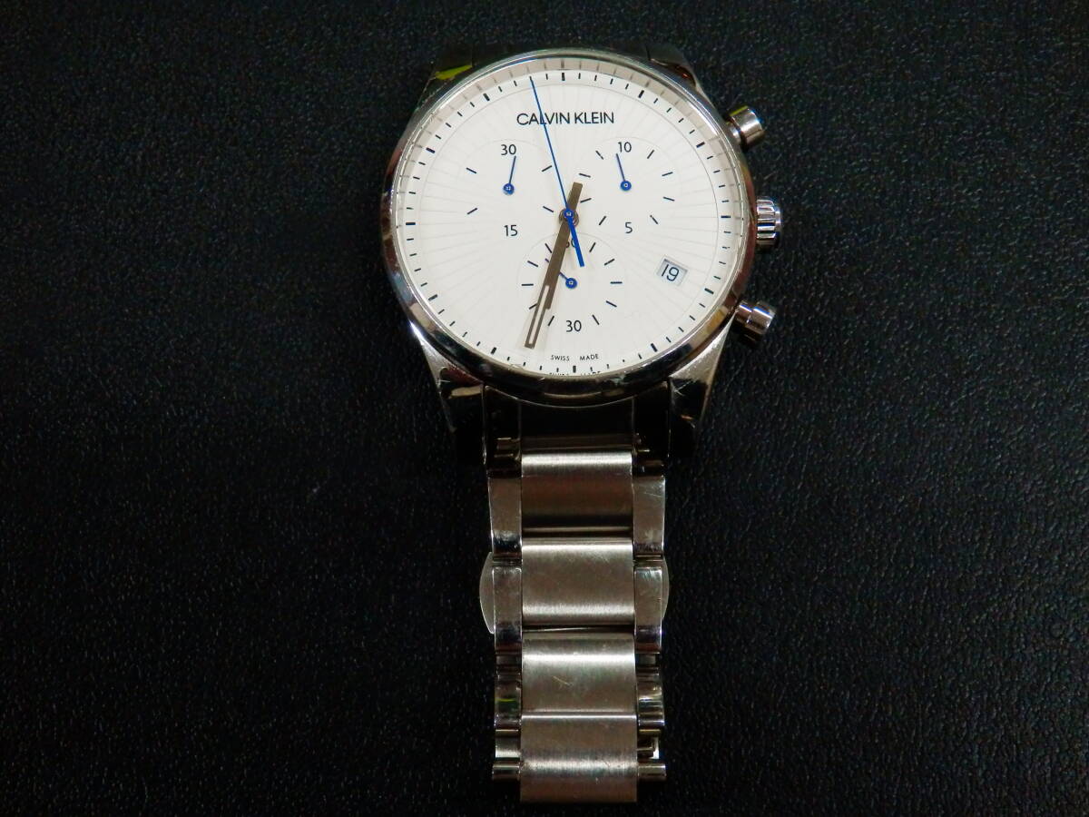 - 【ジャンク】CALVIN KLEIN メンズ腕時計 白文字盤 動作中 中古 1円スタート