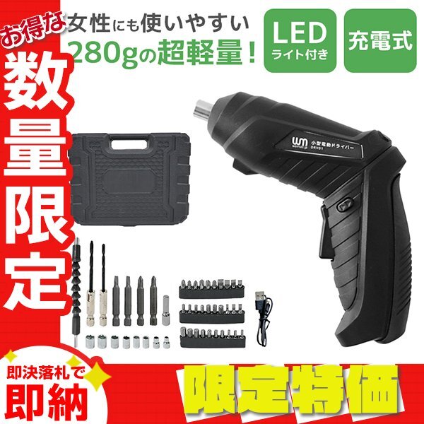 > 【限定セール】電動ドライバー 小型 セット 充電式 ビット 超軽量 コードレス 電動 ドリルドライバー コンパクト 収納ケース DIY ブラック