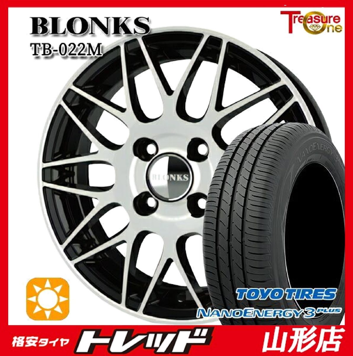 - 山形店 新品 夏タイヤホイールセット ブロンクスTB-022M 14インチ 4.5j 4H100 +45 BP TOYO ナノエナジー3+ 165/65R14 2025年製 ハスラー