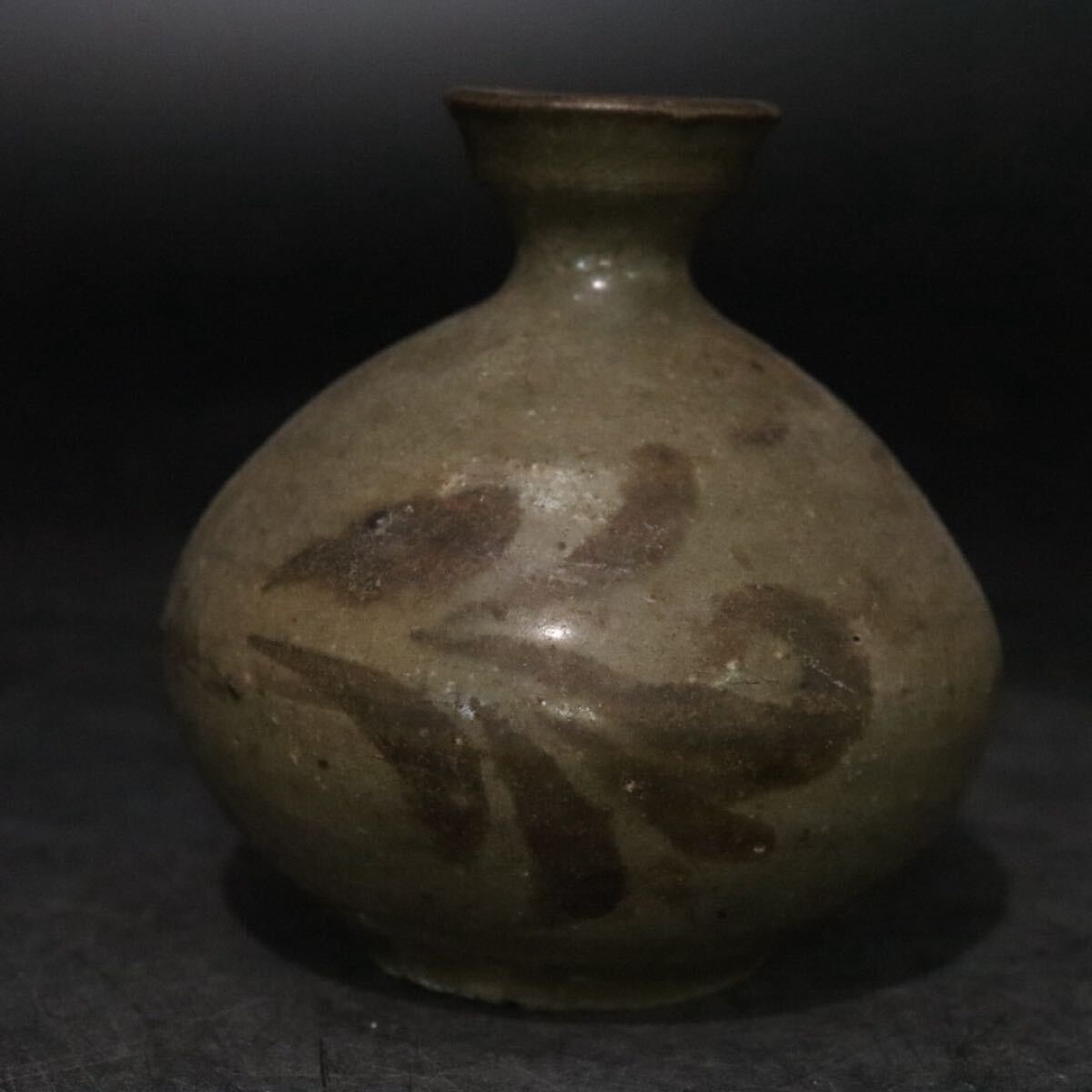 - 時代 鉄絵 青磁 小壺 油壺 / 朝鮮古美術 高麗青磁 李朝 粉青沙器 煎茶道具 .B1196