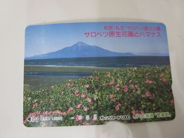 > JR北海道 オレンジカード 「豊富駅」 1,000円 サロベツ原生花園とハマナス 利尻・礼文・サロベツ国立公園 ※汚れあり /未使用品 V23.0