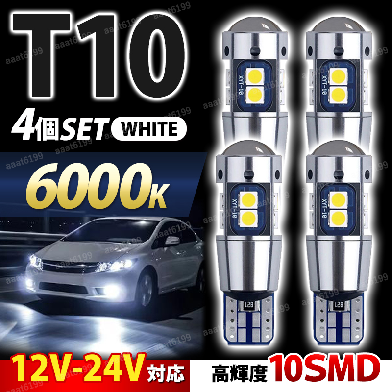 > T10 LED バルブ ホワイト 12V 24V 4個 セット 車検対応 ポジションランプ ルームランプ ナンバー灯 車 トラック 軽自動車 ドレスアップ