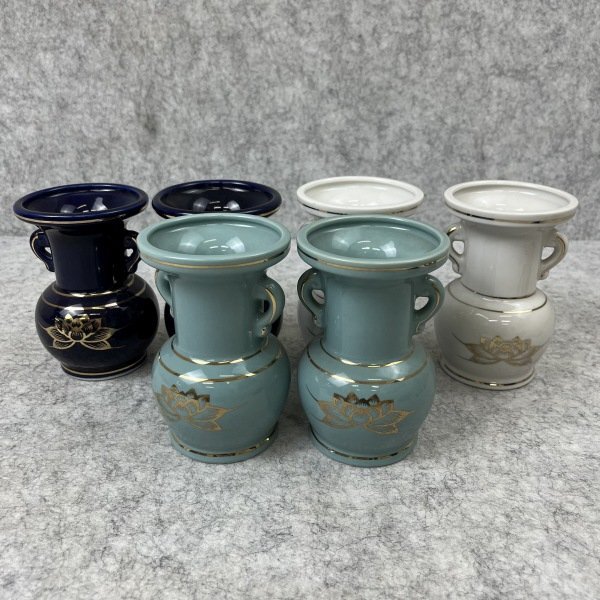 - 【アウトレット品】 花立 仏具セット 3対 青色 水色 白色 6個セット 直径7.5cm 仏壇用仏具 仏具 sp-029-102