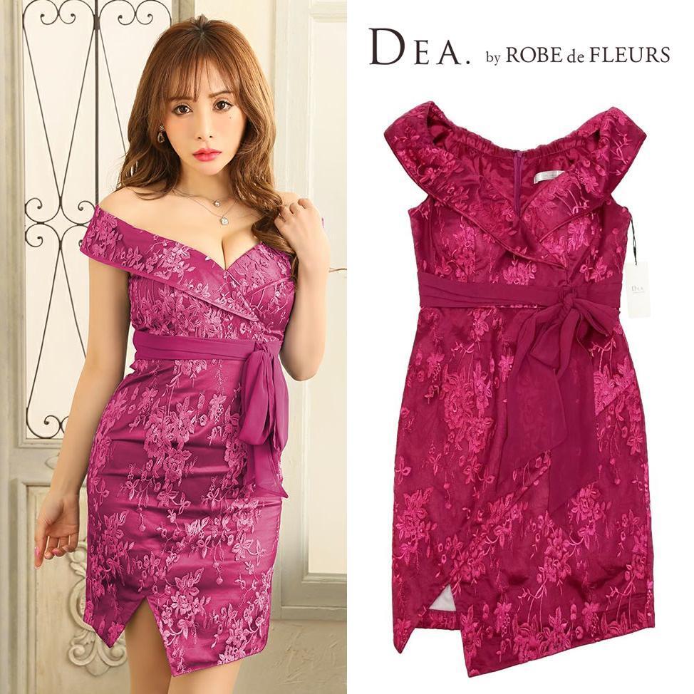 > DEA. by ROBE de FLEURS ディア バイ ローブドフルール シフォンリボンベルトデザイン×刺繍レースタイトドレス DE1760