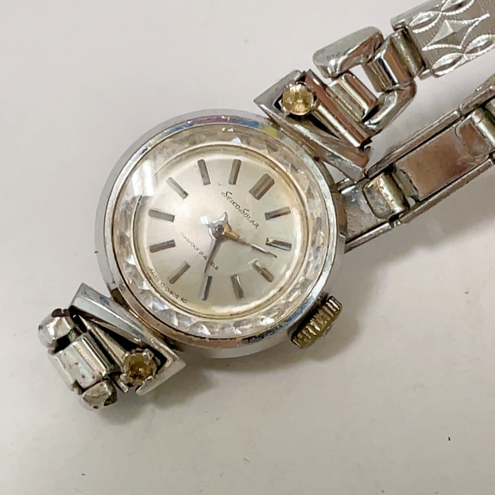 - 即決 送料無料 中古品★SEIKO SOLAR セイコー ソーラー 10-0450 手巻き K14WGケース アンティーク レディース腕時計 稼働品