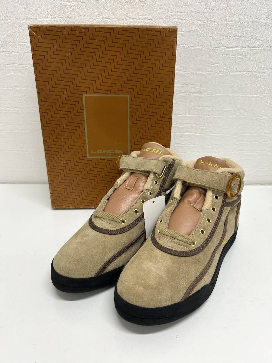 - E-1345 【同梱不可】980円~ 未使用品 LANCEL/ランセル ハイカットスニーカー 23.5cm LF-7110 ベージュ スニーカー 靴 タグ付き