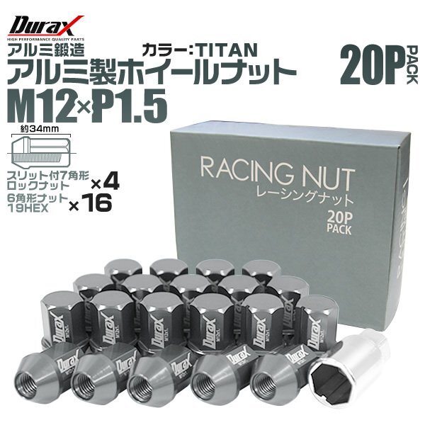 - Durax ホイールナット レーシングナット ラグナット M12 P1.5 アルミロックナット 袋34mmチタン20個 アルミ ホイール トヨタ ホンダ