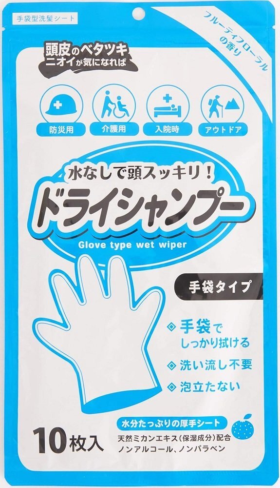 - 【vaps_4】本田洋行 ドライシャンプー 水なしで頭スッキリ 手袋型ウエットシート 業務用 防災 介護 10枚入 送込