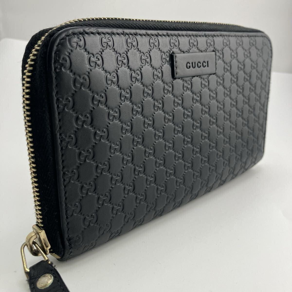 - 【極美品】 GUCCI グッチ マイクロ シマ ラウンドファスナー ジップ 長財布 ブラック 黒 レザー レディース メンズ 鑑定済み