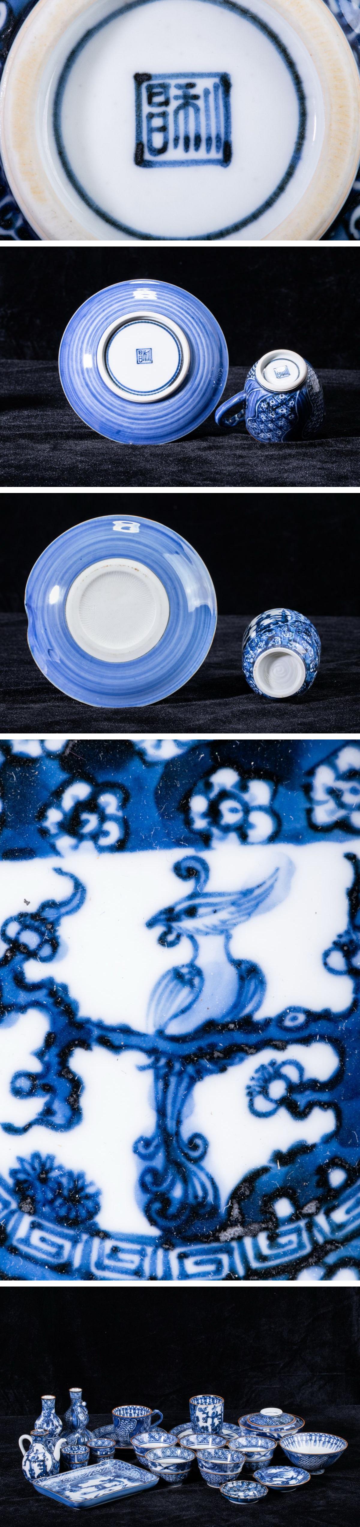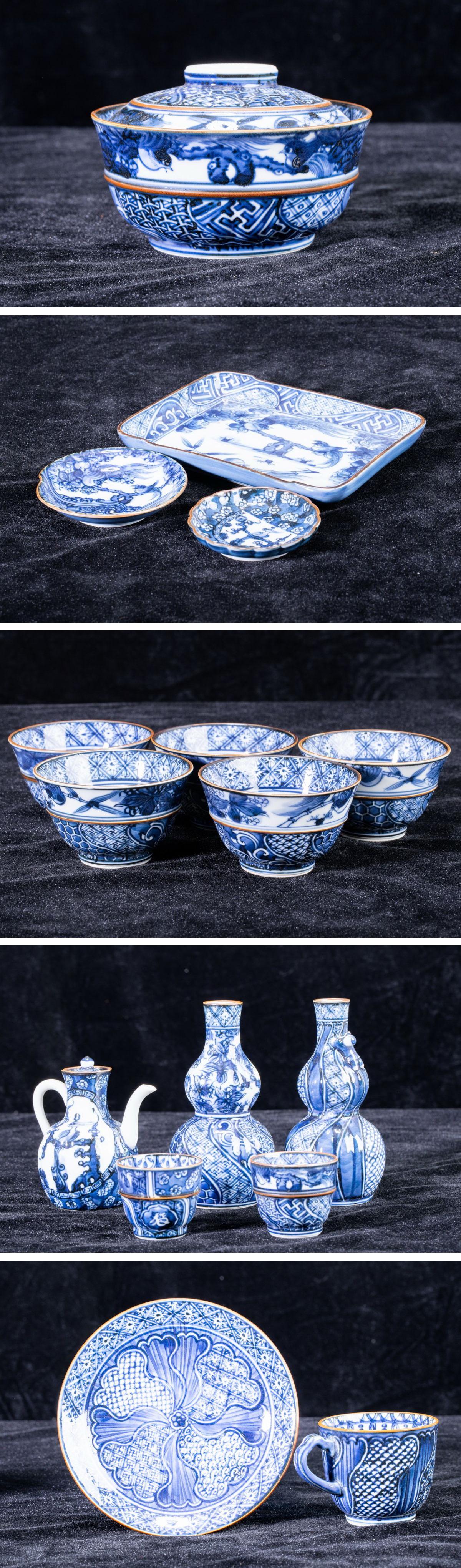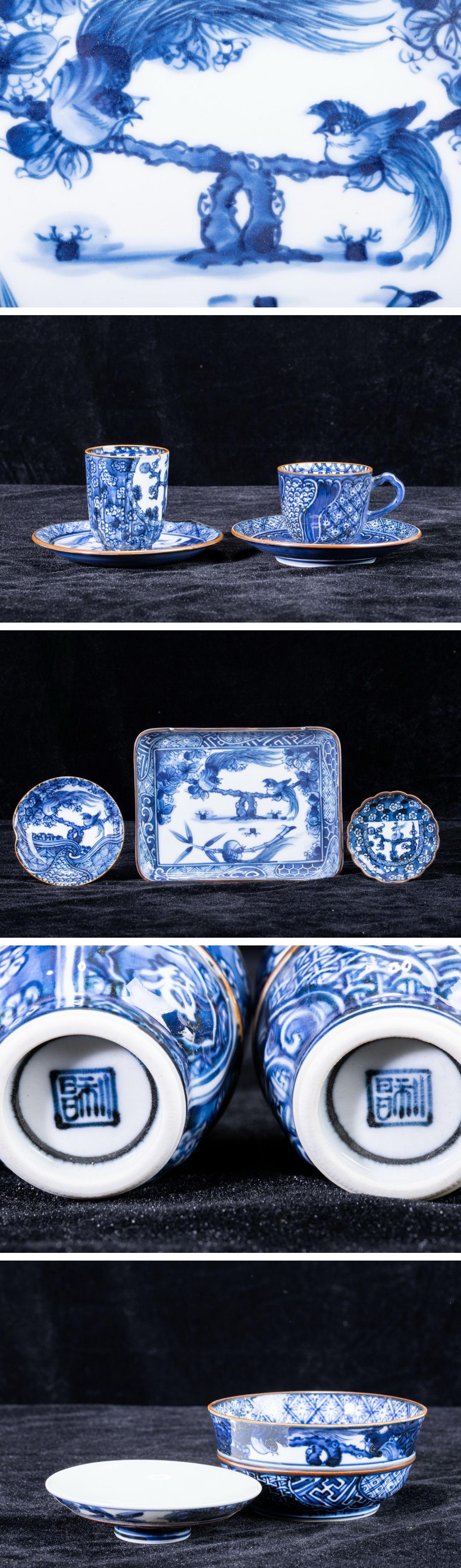 > 【珍品堂】1円から N40-V35 京焼 清水焼 加藤利昌 作 在銘 染付 湯呑 鉢 まとめセット 和食器 茶道具 煎茶道具 抹茶碗 時代物 骨董品 希少