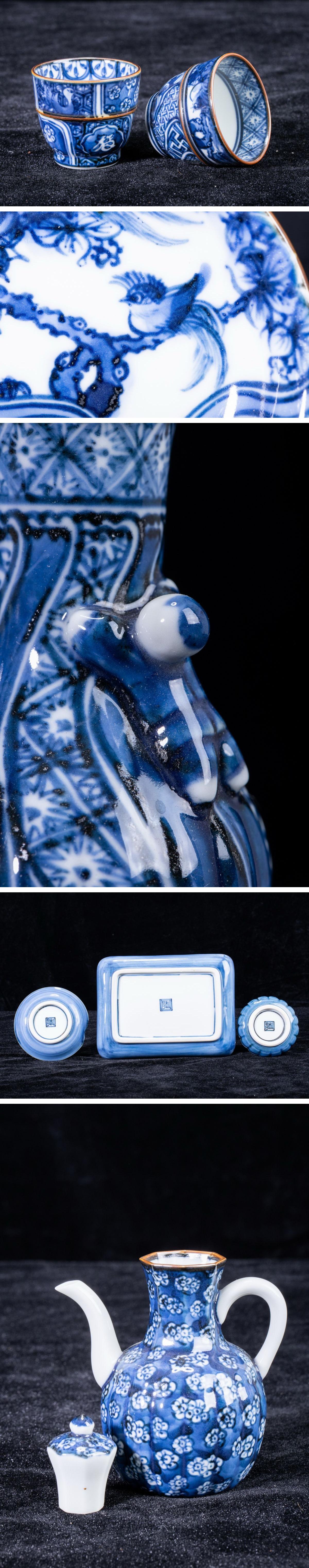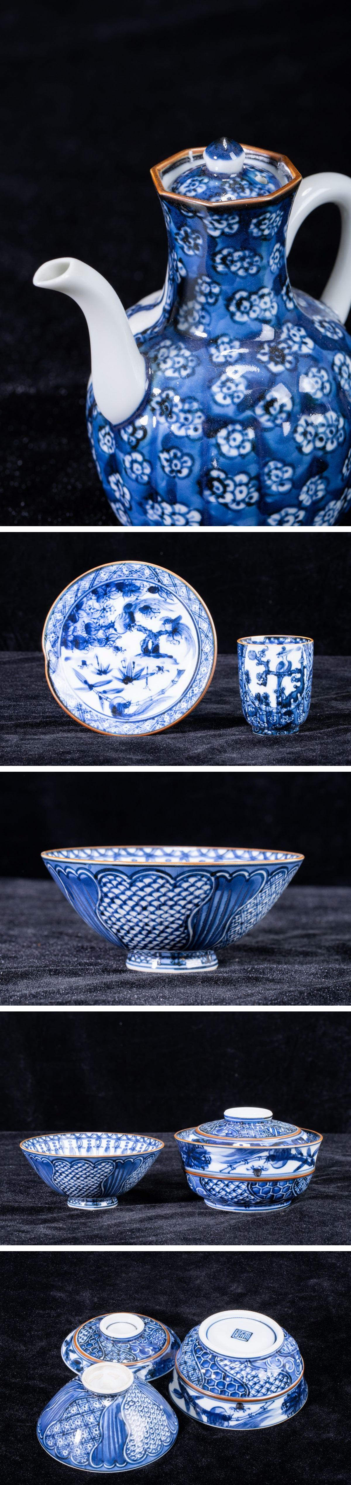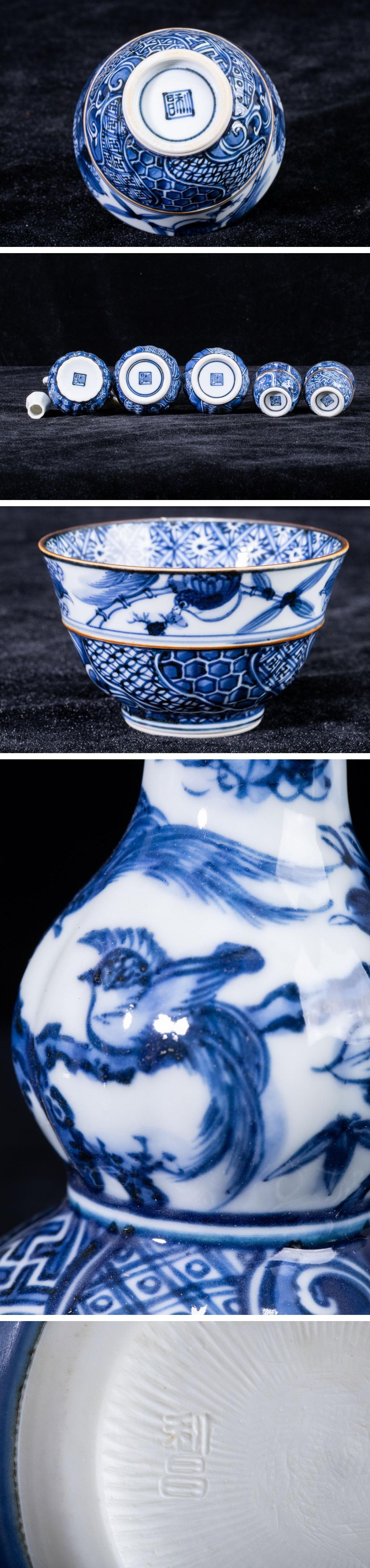 - 【珍品堂】1円から N40-V35 京焼 清水焼 加藤利昌 作 在銘 染付 湯呑 鉢 まとめセット 和食器 茶道具 煎茶道具 抹茶碗 時代物 骨董品 希少