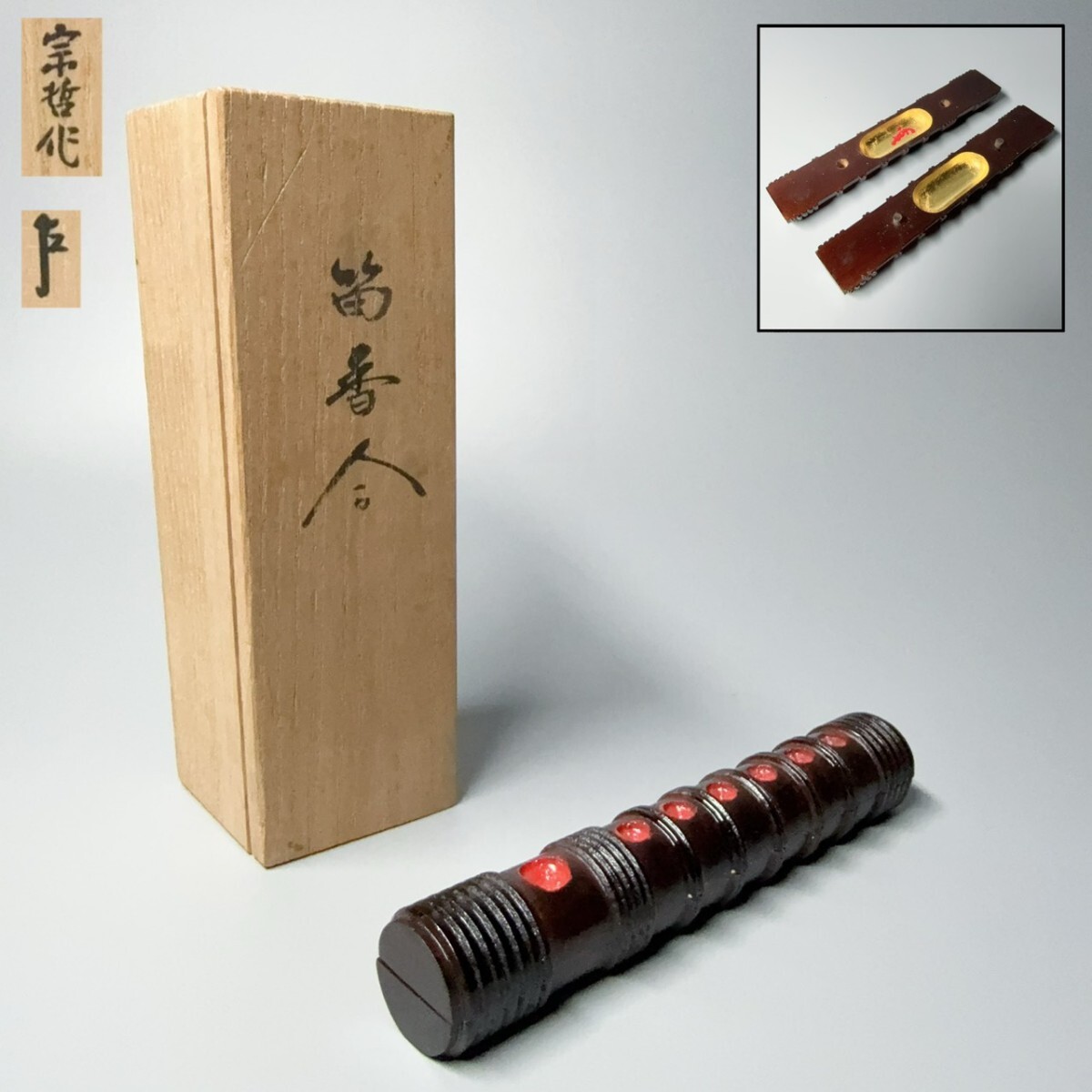- 宗哲造 内金塗笛香合共箱 茶道具 在銘画押